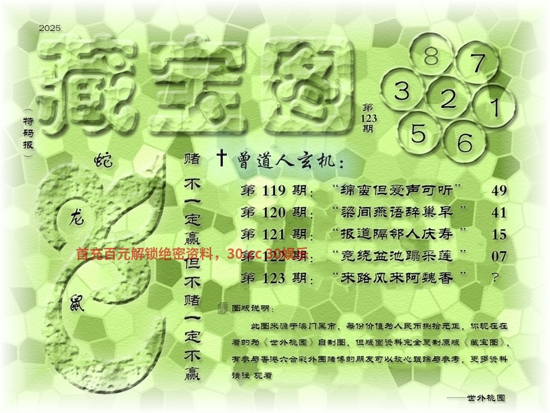 119期:12.13.16.24.25.28.36.37开:蛇49中